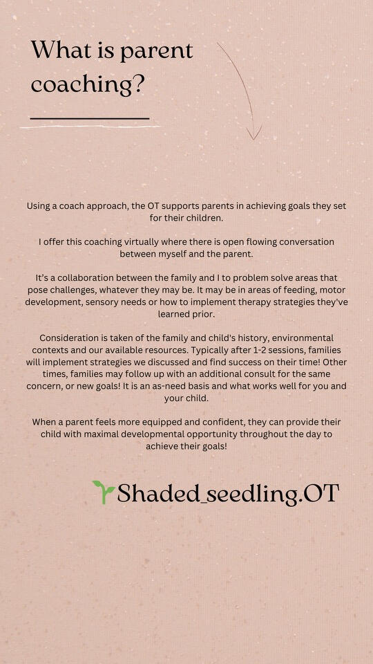 OT assistance in your pocket for 7 days! Tips and guidance offered via instruction and video exchange. A great way to implement activities with ability to reach out with questions/concerns throughout the week.
