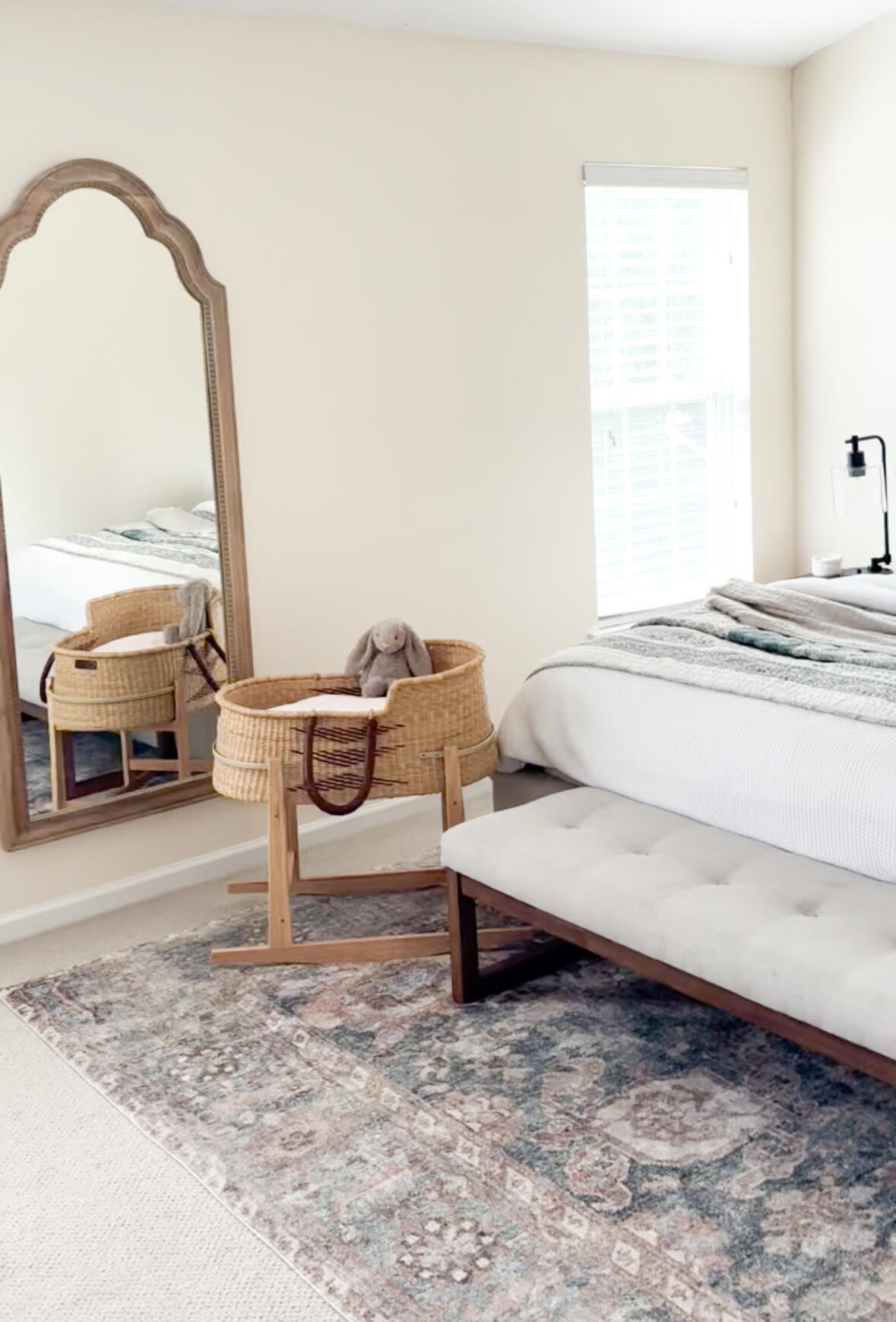 4. A safe space to lay baby in the day (downstairsWith my other babies, I set up a pack n play in the living room. This was great for the newborn phase. It allowed me to have an easily accessible changing area, a safe place for them to nap downstairs and storage for items on the first floor. With this baby, I knew that option would be too bulky and intrude upon play spaces being utilized by my other two. A few other parents had listed a Moses basket as a most used baby item and I found a great deal on a high quality basket with the rocking stand on fb marketplace. It fits great in our living room and I love the portability of the basket so I can have a safe bassinet to move throughout the house. I love this option in place of the pack n play with a basket for storing diapers, wipes and changing products near by!